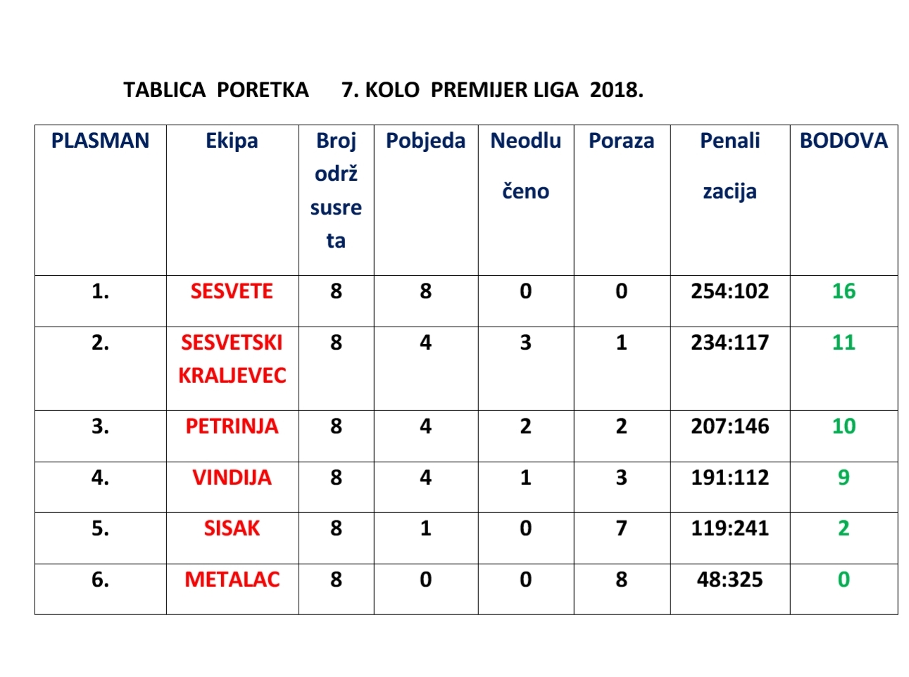 Detalje pogledajte u kompletnom izvještaju: IZVJEŠTAJ 8. KOLO PREMIJER 2018